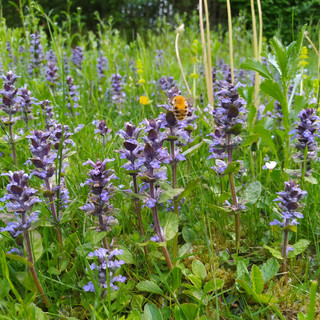 Toutefois, le confinement de 2020 a eu un impact positif sur cette communication. Ayant eu l'occasion de passer la frontière avant la réouverture officielle des frontières en juin, j'ai pu constater une bien belle pelouse parsemée de bugle rampante.